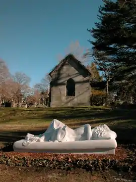 She bought their joint burial plot for the installation in at Woodlawn Cemetery, a National Historic Landmark, and the jewel in the crown of the nineteenth-century garden cemetery movement. Designed as America's Père Lachaise Cemetery, it is the resting place for powerful and prominent Americans in the fields of industry, politics and culture including everyone from J.P. Morgan, Joseph Pulitzer, Ralph Bunche, Fiorello LaGuardia, Elizabeth Cady Stanton, Madame C. J. Walker, to Herman Melville, Duke Ellington, Miles Davis and Celia Cruz. It quickly became the third most visited plot in the cemetery.[6]