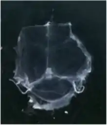 Example of a meningeal whole-mount taken from an adult mouse.[13] Laying the whole-mount on a glass slide allows for histological analysis of the entire dura, including the superior sagittal and transverse sinuses.