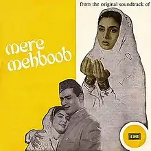Mere Mehboob ("My Beloved") is a 1963 Indian film directed by Harnam Singh Rawail and starring Ashok Kumar, Rajendra Kumar, Sadhana, Nimmi, Pran, Johnny Walker and Ameeta. The film became a blockbuster and took the number one position at the box office in 1963.[1] A Muslim social film, it drew a background from Aligarh Muslim University, Aligarh and traditional Lucknow. The famous song "Mere Mehboob Tujhe Mere" was shot in the University Hall and in a couple of places, one gets to see the University. The opening scene of the movie shows the famous residential hall and the associated clock tower; "Victoria Gate".
