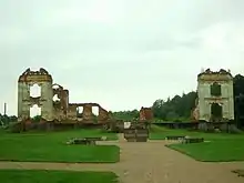 Merkinė Manor was a residential manor in Merkinė village, Šalčininkai District Municipality, Lithuania.[1][2] It was the location of the self-proclaimed Paulava Republic, established by Paweł Ksawery Brzostowski in 1769. In 1770 Brzostowski hired Italian architect Carlo Spampani to build a new manor building in Neoclassical style. The building remained intact until after World War II, when it became a part of a sovkhoz, a Soviet-era farmstead. According to art historian Vladas Drėma, the manor was destroyed when one of the sovkhoz directors set fire to it to hide the traces of his grain thievery.[3] Only ruins remained and the manor has not been rebuilt since, however, the area around it has been cleaned up and turned into a minor tourist attraction, with a memorial stone to commemorate the manor and the Paulava Republic.[4]