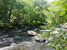 The center of town is not known as "Merrimack Village" per se, but constitutes the area between the more defined Reeds Ferry and Thorntons Ferry areas. Largely considered to be located at the Public Library on the corner of Baboosic Lake Road and Daniel Webster Highway, Merrimack Village was built along the Souhegan River that roughly cuts the current town in half. The elementary school in this part of town is named after James Mastricola,[10] who deeded the land to the town upon his death. One of the three elementary schools, the upper elementary school, Merrimack High School, the library, and the current town hall, among other buildings, are all located on the land formerly owned by Mastricola.