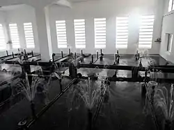 The museum is a former water filtration plant of the Mersin city. The water source was Müftü River (also called Efrenk River). The plant was constructed by the municipality of Mersin during the mayorship of Mithat Toroğlu . The construction began in 1936 and it was officially opened on 5 January 1939 [2] But Mersin is a fast growing city and the filtration plant for about 80000 soon fell short of the demand. In 1984 Mersin began to use water from Berdan River via a much bigger filtration plant and the former filtration plant was disabled.[3] The plant was neglected for about 30 years. But finally the municipality decided to keep the plant as a museum. Following a restoration work of two years, the museum was opened on 21 April 2016. In the opening ceremony mayor Burhanettin Kocamaz said that an unpublished history of the city has been brought to light.[4] Following the restoration, the pumps and the other machinery are still operable.