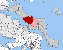 Messapia (Greek: Μεσσάπια) is a former municipality in Euboea, Greece. Since the 2011 local government reform, it is part of the Dirfys-Messapia municipality, of which it is a municipal unit.[2] The municipal unit has an area of 433.26 km2 and a population of 13,327 (2011).[3] Its name derives from the ancient river Messapios, which flows through the middle of the island. The seat of the municipality was in Psachna.