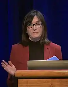 ![]() Gallagher speaks to the National Institute on Aging in 2017 | |