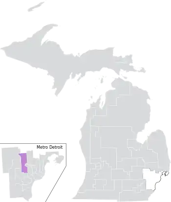 The district was largely located within Michigan's 11th congressional district, also extending into the 13th district. It overlapped with the 11th, 16th, 19th, 20th, and 21st districts of the Michigan House of Representatives.[6]