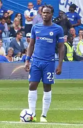In April 2016, English Premier League club West Ham United were reported as the favourites to sign Batshuayi, having offered a €35 million bid.[26] Two months later, their London neighbours Crystal Palace made a €38 million (£31.5 million) bid which would have made him their record signing, while Italian champions Juventus were also among the interested parties.[19] Although Palace's bid was accepted, Batshuayi did not want to make the move, instead engaging with a €40 million (£33.2 million) offer from Chelsea, for which he left Belgium's UEFA Euro 2016 squad to undergo a medical.[27] On 3 July, he signed a five-year deal at Chelsea.[28] He was the first signing by their new manager Antonio Conte, and said his aim was to get the team back to winning the Premier League and qualifying for the UEFA Champions League.[29] Batshuayi added he was eager to work alongside their midfielder Oscar.[30] Batshuayi joined Chelsea for pre-season in Austria, and on 20 July, he made his debut in a friendly against Wolfsberger AC.[31] A day later, he scored his first two goals in an 8–0 friendly victory against Atus Ferlach.[32]