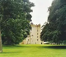 Midmar Castle is a 16th-century castle in Aberdeenshire, Scotland, located 12 kilometres (7.5 mi) west of Westhill and 3.5 kilometres (2.2 mi) west of Echt. The castle was built for George Gordon of Midmar and Abergeldie between 1565 and 1575, and was constructed by the stonemason and architect George Bell.[1] The castle is protected as a category A listed building.[2]