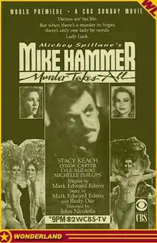 Mike Hammer: Murder Takes All is a 1989 mystery crime thriller television film. It starred Stacy Keach,[1] Lynda Carter, Lindsay Bloom, Don Stroud, Michelle Phillips, Lyle Alzado, and Jim Carrey. It was respectively filmed in Culver City, California and Las Vegas, Nevada.