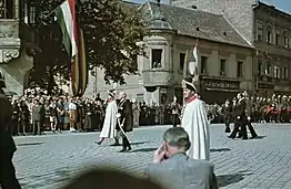 Kállay successfully protected refugees and prisoners, resisted Nazi pressure regarding Jews, established contact with the Allies and negotiated conditions under which Hungary would switch sides against Germany. However, the Allies were not close enough. When the Germans occupied Hungary in March 1944, Kállay went into hiding. He was finally captured by the Nazis but was liberated when the war ended.[2] He went into exile in 1946 and died two decades later in New York City.