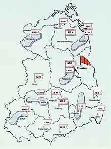| Radio technical battalion 5 (FuTB-5)[15] | Friedrich Dethloff (March 1, 1989) | Basepohl (53°44′36″N 12°56′45″E / 53.743370°N 12.945890°E) |