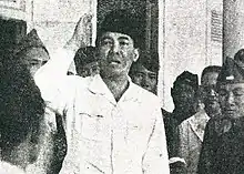 Sukarno speaks with Indonesian soldiers prior to the Battle of Surabaya. The battle saw the birth of the Tentara Keamanan Rakyat, a predecessor of the Indonesian National Armed Forces.
