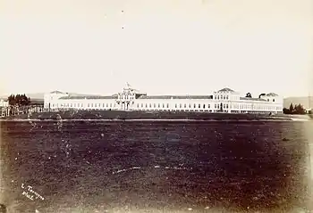 Army officers' training was completed in the Military Academy (now Academia Militar de Agulhas Negras, also the only engineering school in Brazil up to 1874),[40] although it was not obligatory for personnel to study there to advance in the profession.[41] Personnel from the infantry and cavalry branches only needed to study the disciplines of the 1st year (arithmetic, algebra, geometry, trigonometry and technical drawing) and 5th year (tactical, strategy, camping, fortification in campaign, terrain reconnaissance and chemistry). Engineers and artillerymen were obliged to study the complete course, which resulted in their branches being considered the most prestigious. However, if they preferred, infantrymen and cavalrymen were allowed to study the disciplines of the 2nd year (algebra, geometry, analytical geometry, differential and integral calculus, descriptive geometry and technical drawing); 3rd year (mechanics, ballistics and technical drawing); 4th year (spherical trigonometry, physics, astronomy, geodesy, geography and technical drawing); 6th year (regular and irregular fortification, attacking and defending strongholds, civil architecture, roads, ports, canals, mineralogy and technical drawing); and 7th year (artillery, mines and natural history).[42]