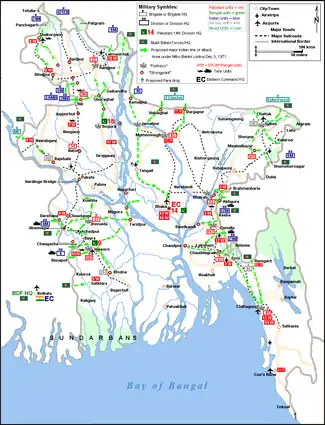Pakistan Eastern Command had run Operation X-Sunderbans in 1967[42] and Operation Titumir[43] in 1970 to formulate the defence plan for East Pakistan, which basically was: