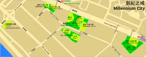 Millennium City (Chinese: 創紀之城; Jyutping: cong1 gei2 zi1 seng4) is a group of skyscrapers in Kwun Tong, Hong Kong built along the southern side of Kwun Tong Road near Ngau Tau Kok station and developed by Sun Hung Kai Properties.[1]