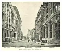 The Mills Building was a 10-story structure that stood at 15 Broad Street and Exchange Place[1] in Manhattan, with an L-shaped extension to 35 Wall Street. It wrapped around the J. P. Morgan & Company Building at 23 Wall Street, on the corner of Broad and Wall Streets.[2] George B. Post was the architect of the edifice.