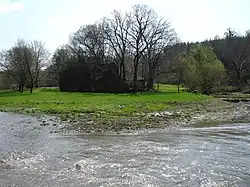 The town's fate was sealed by a June 1892 flood which reportedly swept away all of the town's remaining buildings, leaving no trace of Millville in its wake.[2][3] Heavy rains swelled the pond at the Cox Mill, ¼ mile from Millville, causing the mill dam to burst. The mill pond waters tore down Clear Creek and poured into the South Fork Apple River, rushing toward Millville. The town's buildings, unable to withstand the deluge, were swept away by the violent river.[3]