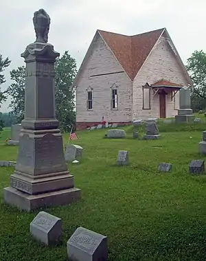 The cemetery is a 7.5-acre (3.0 ha) parcel on the east side of West Shelby Road in the Town of Shelby, approximately one mile (1.6 km) south of Maple Ridge Road (NY 31A) at the hamlet of Millville, and a thousand feet (300 m) north of East Shelby's intersection with Martin and Wheeler roads. Medina, several miles to the northwest, is the nearest large settlement. The area is rural, with open worked fields and houses clustered near the road.[1] The cemetery is built on a small hill that rises 30 feet (9.1 m) above the surrounding level terrain.[3]