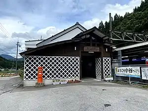 Minami-Otari Station (南小谷駅, Minami-Otari-eki) is a railway station on the Ōito Line in the village of Otari, Kitaazumi District, Nagano Prefecture, Japan. The station is numbered "9".[2] The station is on the electrical borderline of the JR East and JR West systems and operations are shared between the two companies.[1] The section north of this station, operated by JR West is not electrified and all JR East services terminate here.