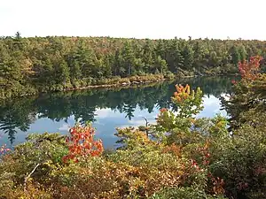 Unique communities such as ice cave talus,[6] pitch pine-oak-heath rocky summit,[7] and extensive chestnut oak forest[8] comprise Minnewaska State Park Preserve. These ecosystems host a variety of plants and animals that are uncommon in New York State. Wildlife such as the timber rattlesnake (Crotalus horridus), bobcat (Lynx rufus) and New York State's only documented occurrence of the noctuid moth Zale curema reside within the preserve.[9]