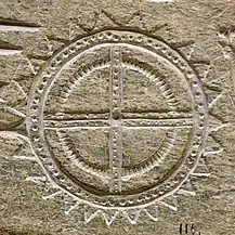 The Minoan Moulds of Palaikastro (Greek: Μήτρες του Παλαιοκάστρου Σητείας, romanized: Mitres tou Palaiokastrou Sitias) are two double-sided pieces of schist, formed in the Minoan period as casting moulds for plaques with figures and symbols. These include female figures with raised arms, labrys double axes (Λάβρυες, labryes) and opium poppy flowers or capsules, two double axes with indented edges, the Horns of Consecration symbol, and a sun-like disc with complex markings, which has been claimed by some researchers to be for making objects to use in astronomical predictions of solar and lunar eclipses.