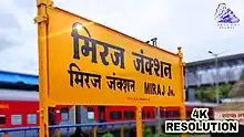 Miraj Junction railway station (station code:- MRJ) is an important busy junction railway station in the city of Miraj, Maharashtra. The Pune – Yeshwantpur railway line passes through Miraj where it meets the Miraj – Kolhapur branch line. The Miraj - Nagpur section starts at Miraj and passes through towns such as Pandharpur, Kurduvadi, Barshi, Latur, Parli Vaijnath and Osmanabad. It is also a major Junction on Mumbai - Miraj - Bangalore line and Miraj- Nagpur line (via Kurduvadi, Osmanabad, Purna and Nanded.