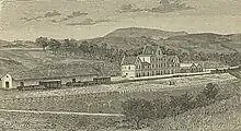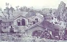Postcard from the late 19th century, showing the passenger building and workshops of the Mirandela station