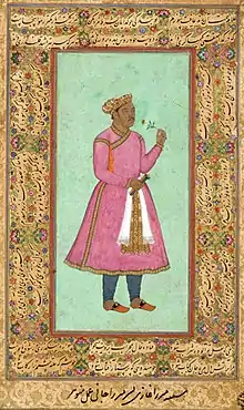 ![]() "Likeness of Mirza Ghazi, son of Mirza Jani". Made by Manohar Das, a Mughal painter at the Tarkhan Court in the province of Thatta, circa 1610.[1] | |||||