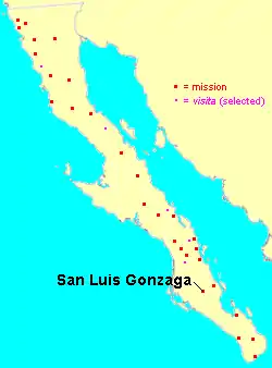 Mission San Luis Gonzaga was a Jesuit mission established among the Guaycura on the Magdalena Plains of central Baja California Sur, Mexico. The mission was dedicated to Aloysius Gonzaga.