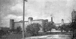 The textile complex consisted of four mills that were built over a period of 21 years, from 1873 to 1894.[5] By 1882, electric lights had been installed to illuminate the textile buildings. When all four mills were completed, they covered several city blocks, and one was five stories high.
