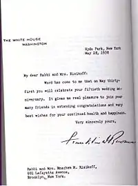 Letter from President Roosevelt to Risikoff, congratulating him on his 50th wedding anniversary