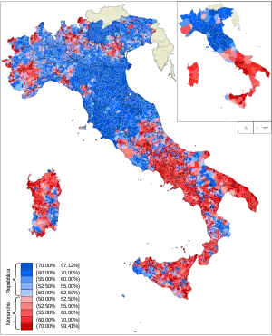 The aftermath of World War II left Italy also with an anger against the monarchy for its endorsement of the Fascist regime for the previous twenty years. These frustrations contributed to a revival of the Italian republican movement.[33] Italy became a republic after the 1946 Italian institutional referendum[34] held on 2 June, a day celebrated since as Festa della Repubblica. It was the first time that the whole Italian Peninsula was under a form of republican governance since the end of the Roman Republic.