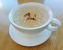 Mogwa-cha (모과차) or quince tea is a traditional Korean tea made with Chinese quince.[1] Most commonly, mogwa-cha is prepared by mixing hot water with mogwa-cheong (quince preserved in honey or sugar).[2] Alternatively, it can also be made by boiling dried quince in water or mixing powdered dried quince with hot water.[2]