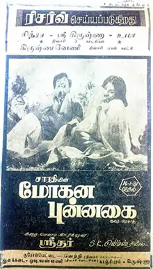 Mohana Punnagai (transl. The seductive smile) is a 1981 Indian Tamil-language romance film written and directed by Sridhar. The film stars Sivaji Ganesan, Geetha, Jayabharathi, Padmapriya, Anuradha and Anandhi. It was released on 14 January 1981.[1] The film was an average grosser in Tamil Nadu, but performed better in Sri Lanka.[2]