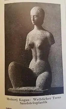 Moissey Kogan (12 March 1879[1] – 3 March 1943[2]) was a Bessarabian Jewish medalist, sculptor and graphic artist[3] who spent much of his time in Paris and travelled throughout Europe. He specialised in creating sculptures and graphic art based on the female form. The Moissey Kogan Catalogue Raisonné of Sculpture & Prints Project is in the process of compiling a scholarly catalogue raisonné of Moissey Kogan’s sculpture and prints, and is preparing a comprehensive monograph on the artist’s life and career.[4] The Moissey Kogan Archive of the European Cultural Foundation, in Bonn, collects and captures the entire work of the artist.[5] Kogan is sometimes confused with Russian painter Moisey Kogan (1924–2001), who specialized in colorful oil paintings of Russian village life, landscapes, churches etc.[6]