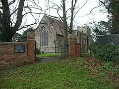 The Anglican church at Molesworth is dedicated to St Peter and is a Grade II listed building standing on the west of the village. The church is in the deanery of Huntingdon in the diocese of Ely. The chancel was built c.1270 and the nave was re-built and the tower added in the 15th century. The church was restored in 1884–85. The presence of several 12th century stones suggests that an earlier stone church may have existed on the same site.[21]