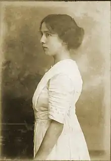 Máire, or as known more commonly by her nickname 'Mollie', Gill was born in County Dublin to James and Jane Gill on 24 March 1891.[2][3] Gill's father James was employed as a boot-maker in Dublin while her mother was solely focused on domestic duties within the home.[2] She was the second eldest child in a family of eight. She resided in a second-class cottage in the townland of Murphystown in Sandyford with her parents, brothers James and Michael J. and sister Margaret.[1][2] Gill was raised in a Roman Catholic household.[2] Gill was the only member of her family who was able to read and write in both English and Irish, and had Irish classes orgnaised for her by the Yeats family as well as lessons in drama.[2][3]