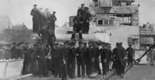 Following the end of the war in 1918, Moltke, together with most of the High Seas Fleet, was interned at Scapa Flow pending a decision by the Allies as to the fate of the fleet. The ship met her end when she was scuttled by her crew, along with the rest of the High Seas Fleet in 1919 to prevent them from being seized by the British Royal Navy.[6] The wreck of Moltke was raised on 10 June 1927, and scrapped at Rosyth from 1927 to 1929.[14]