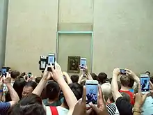 In recent decades, the painting has been temporarily moved to accommodate renovations to the Louvre on three occasions: between 1992 and 1995, from 2001 to 2005, and again in 2019.[103] A new queuing system introduced in 2019 reduces the amount of time museum visitors have to wait in line to see the painting. After going through the queue, a group has about 30 seconds to see the painting.[104]