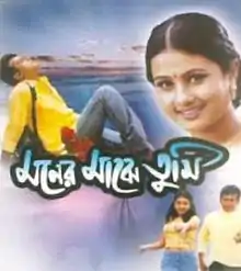 Moner Majhe Tumi (transl.You’re in my Soul) is a 2002 Bangladesh and India joint venture Bengali-language movie. It is a official remake of the 2001 Telugu language film Manasantha Nuvve. The movie was top grossing in Bangladesh for 2002. This film is selected for preservation in Bangladesh Film Archive.[2]