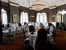 The building was gutted by an arson fire in April 1903 set by the bartender's son and was declared a total loss by the club's Wall Street, New York City insurance company.[2][3] Members hastily contracted with St Paul/New York City architect Cass Gilbert, assisted by George H. Carsley, to replicate the old clubhouse's floor plan but to add a rathskeller and dining room or banquet hall. Contrary to popular myth and erroneous information, the granite arches were totally dismantled, inventoried and set aside for potential incorporation into the new structure. The new building was constructed using brick manufactured by the Western Clay Mfg. Co. (Kessler Brick Co.) west of downtown, recycling some of the granite from the razed clubhouse, augmented with new granite from the nearby Baxendale quarry.