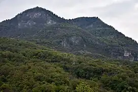 The peak, where a small church (San Martino in Culmine) is located, can be reached by car from Duno, or through paths that allow hikers to visit the restored remains of the Cadorna Line.[10][11][12]