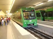 Trains in the underground platforms at the upper terminus.