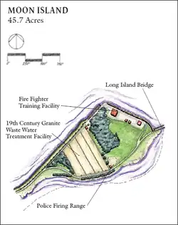 Moon Island is an island in Quincy Bay, in the middle of Boston Harbor, Massachusetts. It is the location of the Boston Fire Department Training Academy, and Boston Police Department shooting range. All of the land on the island is owned by the City of Boston but the island is under the jurisdiction of Quincy, Massachusetts.[1] It is also part of the Boston Harbor Islands National Recreation Area.