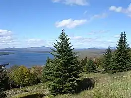 Mooselookmeguntic Lake's maximum depth is 132 feet (40 m) and its surface area is 25.5 square miles (66 km2).[2] It is the sixth largest lake in Maine. Mooselookmeguntic Lake's elevation is 1,467 feet (447 meters) above sea level.