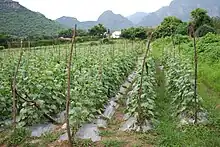 Historian Ward Barrett considers that the "region now known as Morelos has a physical unity sufficient to define and set it in strong contrast to other regions of Mexico."[13][14] Much of this definition comes from its geography, which is a basin into which abundant water flows. The arrival of the Spanish shifted agriculture from subsistence maize production and cotton cultivation to sugar cane and the refining of such into sugar in nearby mills. This system would remain more or less intact until the Mexican Revolution.[15]