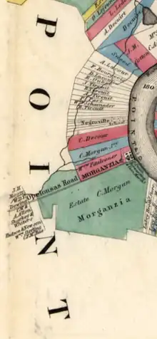 Morganza takes its name from Morganza Plantation, the antebellum holding of Charles Morgan, an early surveyor, political figure and first American sheriff of Pointe Coupee Parish.[4] Morgan, the son of James Morgan from a town of the family's name in Sayreville, New Jersey, and a captain in the Second Regiment of the Middlesex County (N.J.) militia during the Revolutionary War. Evidence indicates he was involved in the transfer of slaves from New Jersey to Louisiana in conflict with New Jersey law.[5] The U.S. Post Office opened in 1847, closed some years later, and reopened in 1899. Members of the Campbell family held the position of postmaster until 1970. The town was not incorporated until 1908.