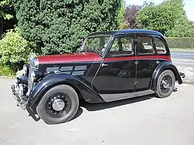 For 1938 the engine was updated to overhead valve as fitted to the Wolseley Ten increasing the power output from 27 to 37.5 bhp.[2] The chromium-plated radiator surround was replaced by a painted one, and all paint schemes were single, rather than two-tone.