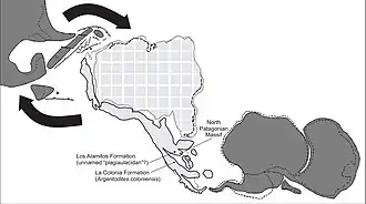 The discovery of Morrosaurus was concurrent with the first evidence of a previously hypothesized uniting clade of ornithopod dinosaurs from the continents that had comprised Gondwana. The distinction between fauna of this part of the world as compared with the northern hemisphere equivalent Laurasia had long been noted, but evidence was traditionally lacking for a biogeographic link for dinosaurs between the different Gondwanan regions. Brazil and Northern Africa shared a fauna distinct from that of Patagonia, and each of these distinct from that of India and Madagascar; likewise, Australia, New Zealand, and Antarctic seemed connected to the exclusion of the others.[1] This contrasted with existing recognition of links between the flora and marine invertebrate fauna between Patagonia, Antarctica, Australia, and New Zealand, termed the Weddellian Bioprovince.[1][6]