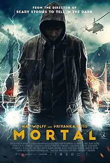 Mortal (Norwegian: Torden) is a 2020 fantasy action film co-written and directed by André Øvredal. The film is inspired by Norse mythology, and stars Nat Wolff. It is supported by a grant from the Government of Norway. The film's dialogue is in English and Norwegian and most of the actors are Norwegian, with the exception of Wolff[5][6][7][4] and Priyanka Bose. The film's original music by Marcus Paus was nominated for the Amanda Award and was the Norwegian nominee for the Nordic Film Music Days – HARPA Award.[8]