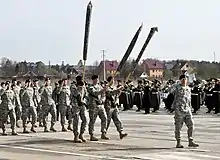 At the first parade in 1945, the color squad of the First Polish Army was the only foreign contingent invited to the ceremony. In 1985, veterans of the Polish People's Army (Polish 1st Infantry Division) and the Czechoslovak People's Army (Czechoslovak 1st Corps) took part in the veterans procession of the parade.[47] In 2010, President Dmitry Medvedev invited foreign troops to the parade for the first time since the fall of the USSR, and included military units countries allied with the Soviet Union during World War II. Representation at the parade included contingents from France, Poland, the United Kingdom, the United States and other members of the Commonwealth of Independent States. Upon request from the Ministry of Defence of Turkmenistan, the Turkmen contingent was led by an officer on horseback, with the horse being flown into Moscow from Ashgabat.[48] After a 5-year break, the platinum jubilee parade in 2015 saw the return of units from the CIS (save for Moldova and Ukraine) and saw parade participants from the Serbian Guards Unit the Beijing Capital Garrison Honor Guard Battalion,[49] Mongolian State Honor Guard, and The Grenadiers.[50] representing their countries for the first time. The 2020 parade saw the return of all participants of the 2015 parade (with most of the post-Soviet nations being represented by different units) as well as the return of Turkmenistan and Moldova, whose militaries returned after 10 years. Turkmen contingent for the 2020 parade consisted of two color guards (one carrying the Flag of Turkmenistan and the other carrying the combat flag of the 748th Infantry Regiment) riding in two GAZ-M20 Pobeda cars brought in from the Turkmen capital.[51]